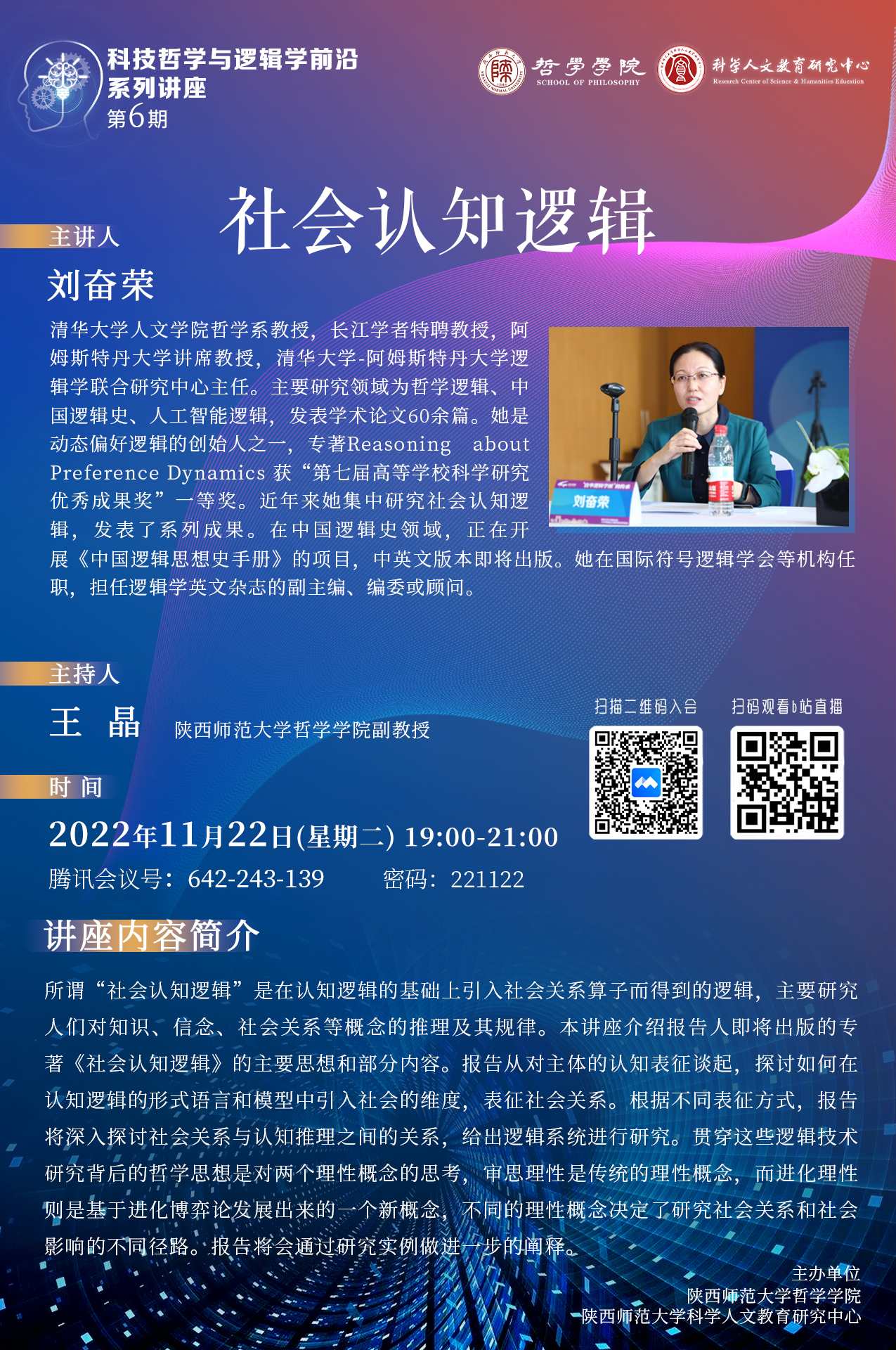 - "Social Epistemic Logic". Department of Philosophy, Shaanxi Normal University, Xi'an, Nov 22, 2022 (online). Poster.